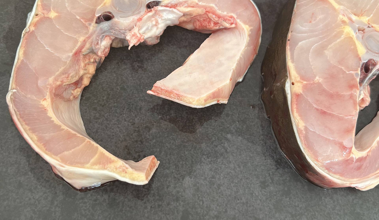 У осетра плотная и можно сказать волокнистая структура. Тем не менее, он сочный и нежный. Лучше всего осетр подходит для запекания.